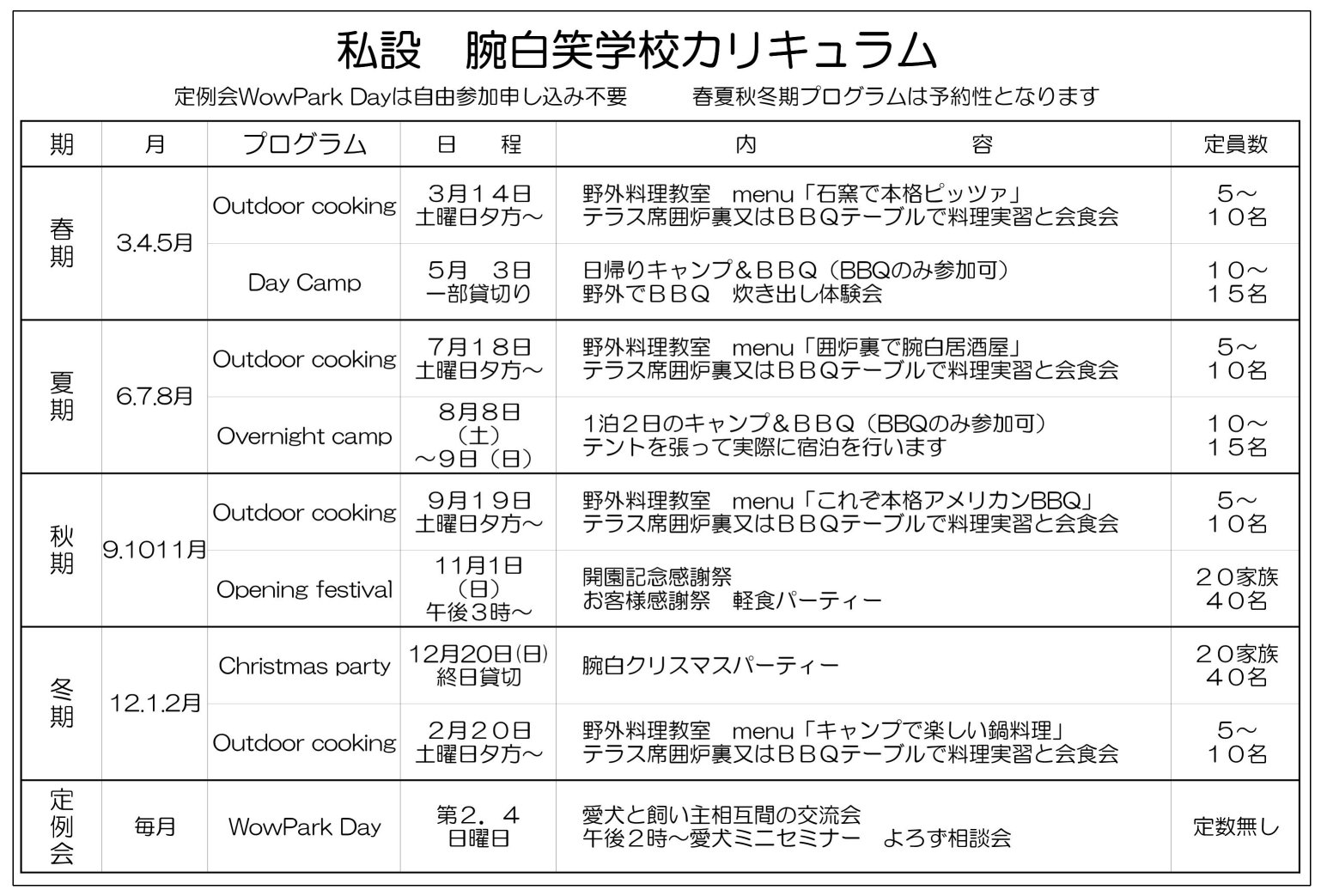 参加費は 入園費の他にBBQ食材費が必要となります 一人1,000円程度の予定です。